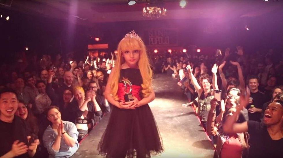 An 8-year-old drag queen who goes by the stage name, "Lactatia," is the newest sensation in Montreal's drag scene. (Image source: YouTube screenshot)