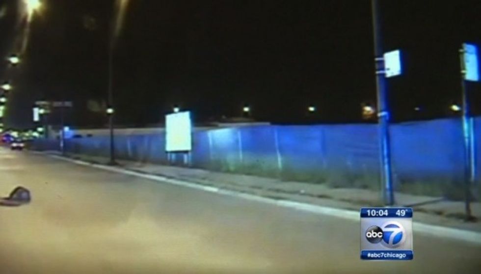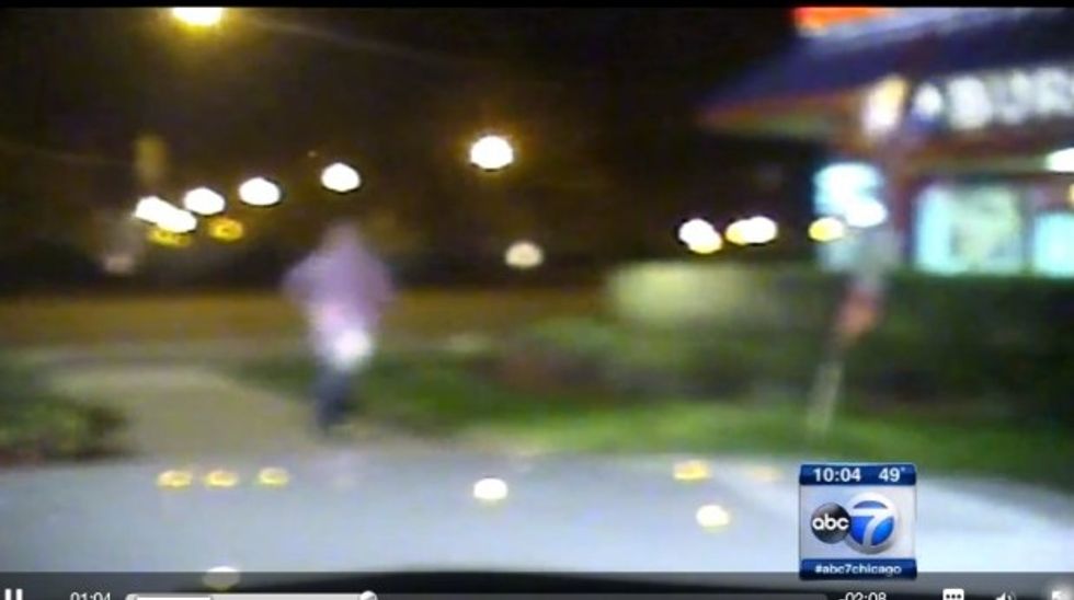 This view from Officer Van Dyke's SUV showed McDonald running. (Image source: WLS-TV)
