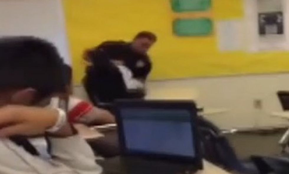 Let's take a look at the latest bit of evidence presented by the left to prove that law enforcement in America is nothing more than a racist conspiracy against black folks. The video went viral last night under the hashtag #AssaultAtSpringValleyHigh (also the title of the next Jason Statham movie), and it shows, according to the Black Lives Matter camp, a bigoted white cop launching an unprovoked attack against a black high school student — an "innocent child," as they put it — by slamming her to the floor and "throwing her across the room." The officer, Ben Fields, has been placed on leave and is now being investigated by the feds for Civil Rights abuses.