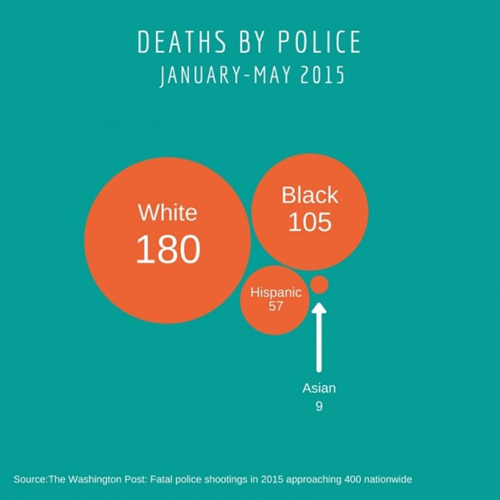 I realize that African Americans represent just 17.9 percent of the population and yet roughly 43 percent of the deaths by police on this chart are African Americans—and it’s this disproportion that leads many to believe it’s on purpose.