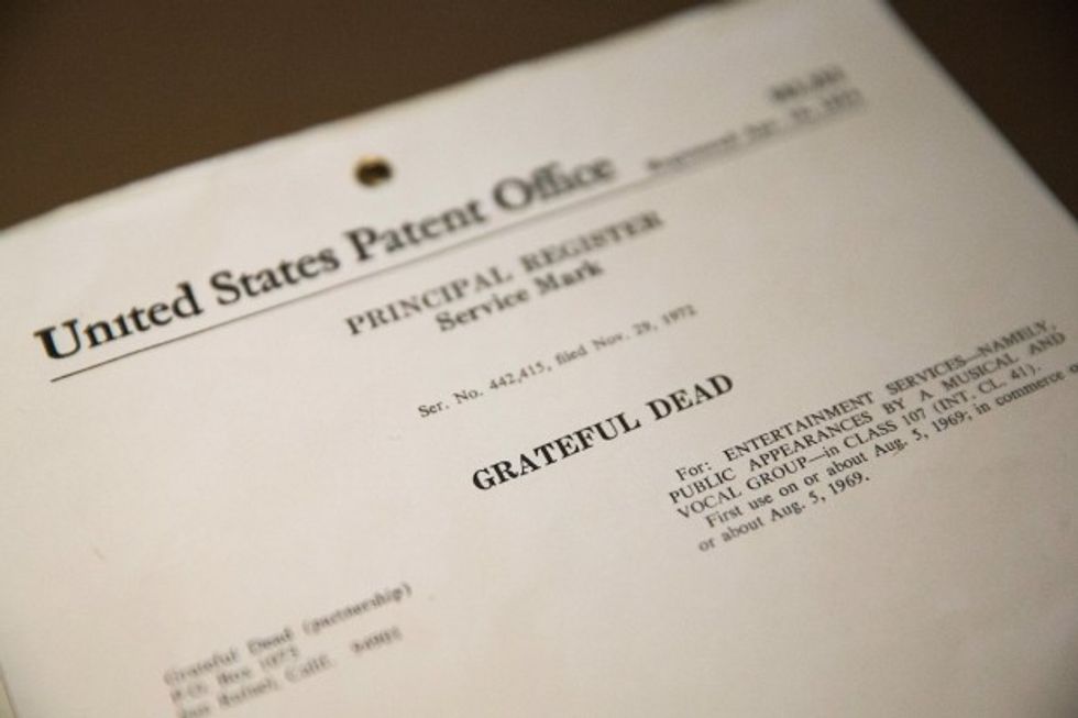The original U.S. Patent & Copyright embossed document registering ownership of the name 'Grateful Dead' is prepared for auction on March 27, 2015 in Union, Illinois. (Photo: Scott Olson/Getty Images)