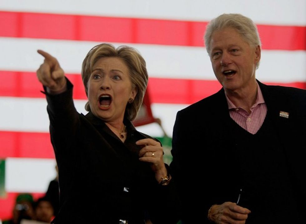Former president Bill Clinton and his wife Democratic presidential candidate Hillary Clinton during a campaign stop In Nashua, New Hampshire, Jan. 4, 2008. (Image source: Joe Raedle/Getty Images)