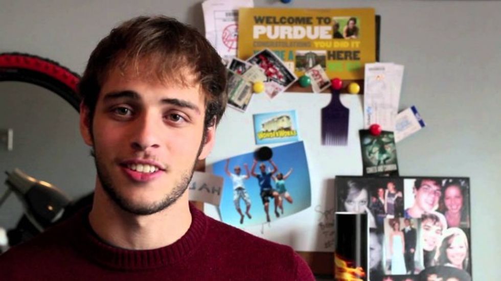 Late one night at Purdue University, freshman Alex Radelich of Indiana, was sitting silent in his dorm room watching the movie "Evan Almighty" on TV.
