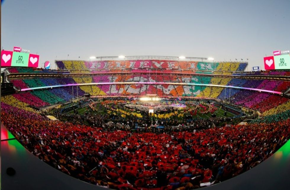 3. The Black Lives Matter interlude was sandwiched within a Coldplay performance that ended with the entire stadium adorned in flowers, lit up with rainbow colors, and hundreds of fans holding placards that read "Believe in Love." Progressives are having a lot of fun snickering at those of us who were dense enough to think there may have been a political statement buried not-so-deeply under the flower petals and rainbow colors. When you turn an entire football stadium (in San Francisco, by the way) into a rainbow flag, is there any other way to interpret it than "oh, we're being preached at about gay rights"?