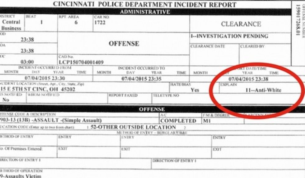 The brutal attack was first described as “anti-white” by officer Alicia Essert in the original incident report, but Capt. Mike Neville said on Monday that the preliminary description was incorrect.