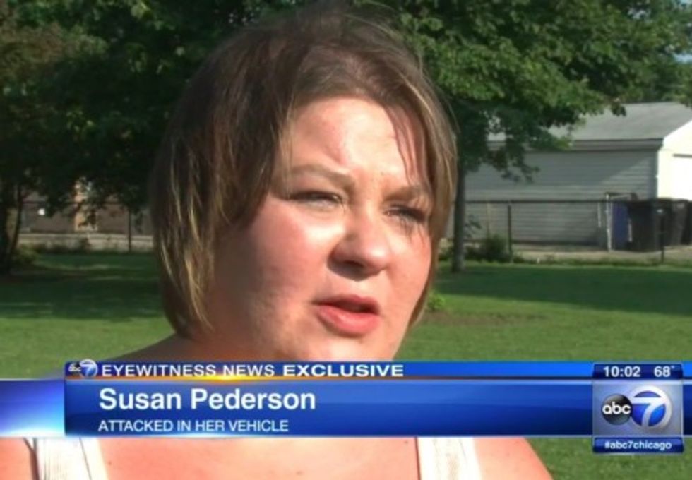 Susan Pedersen said she had just dropped off a friend at the University of Chicago on Thursday night and was stopped at a red light near the campus with her two young children.