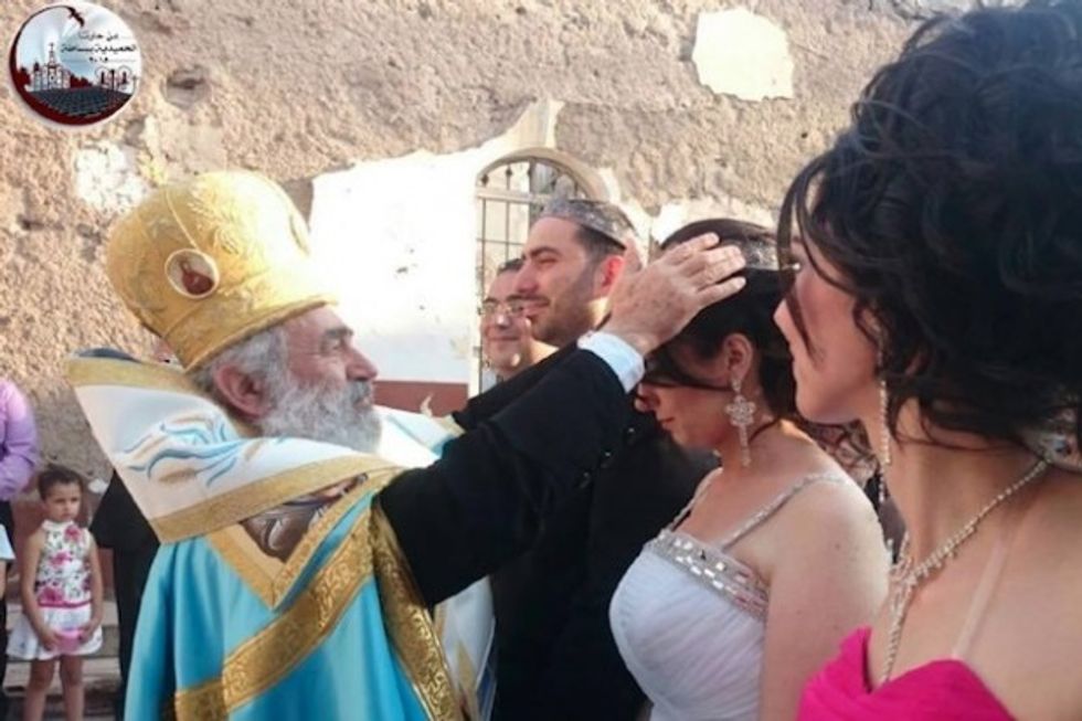Photos of the celebration were posted by the St. George’s Church in Homs and a neighborhood Facebook page which identified the couple as Fadi and Rana.
