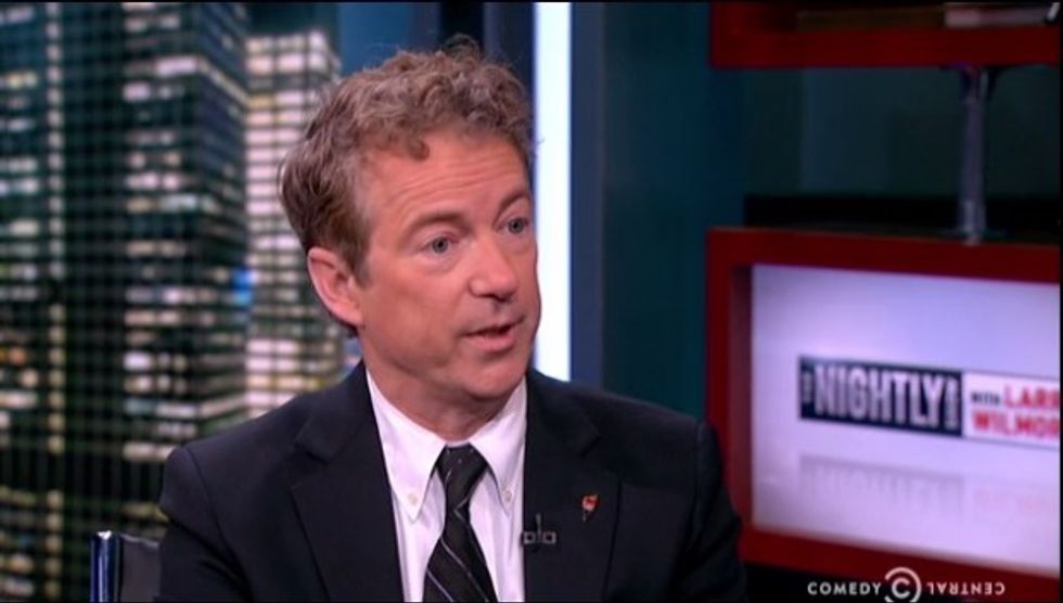 Appearing on Comedy Central's "Nightly Show With Larry Wilmore" Monday, Paul invoked his experience as an optical surgeon to draw an analogy between voters' love affair with the bombastic business mogul and a speck of dust in one's eye.