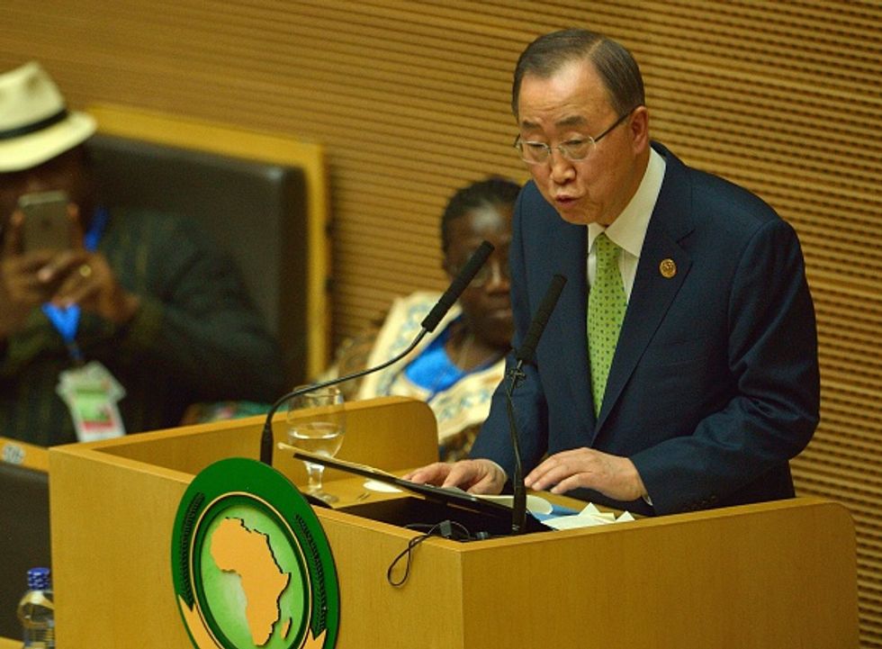 UN Secretary General Ban ki-Moon speaks at the 26th presidential summit of the African Union on January 30, 2016 at the organisation's headquarters in Addis Ababa.