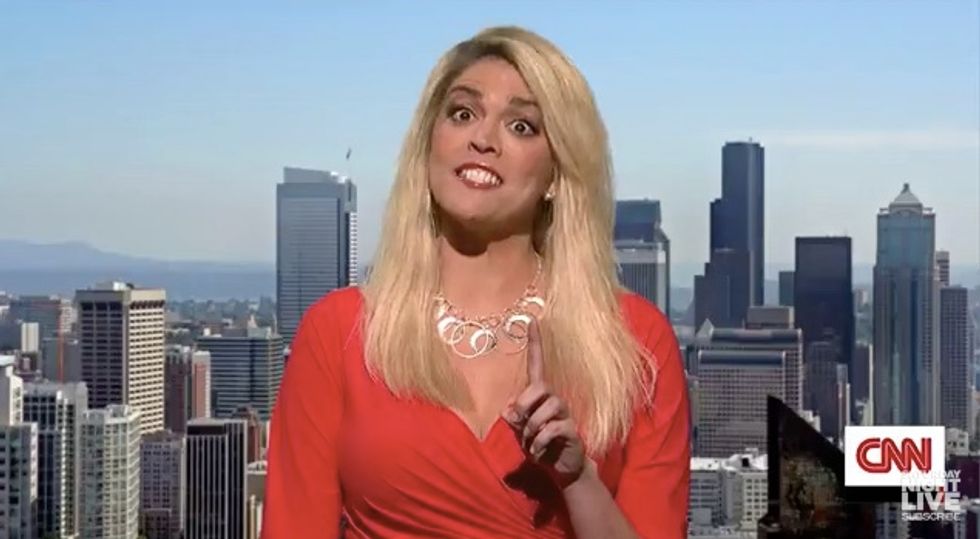 This week's episode of "Saturday Night Live" parodied Republican front-runner Donald Trump's controversial statements about women in a spoof of CNN’s “At This Hour” with Kate Bolduan (Kate McKinnon).