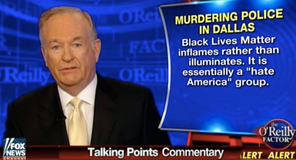 Following Thursday's horrific attack on Dallas police officers, Fox News host Bill O’Reilly condemned racial “provocateurs” and the Black Lives Matter movement on his show, "The O'Reilly Factor."