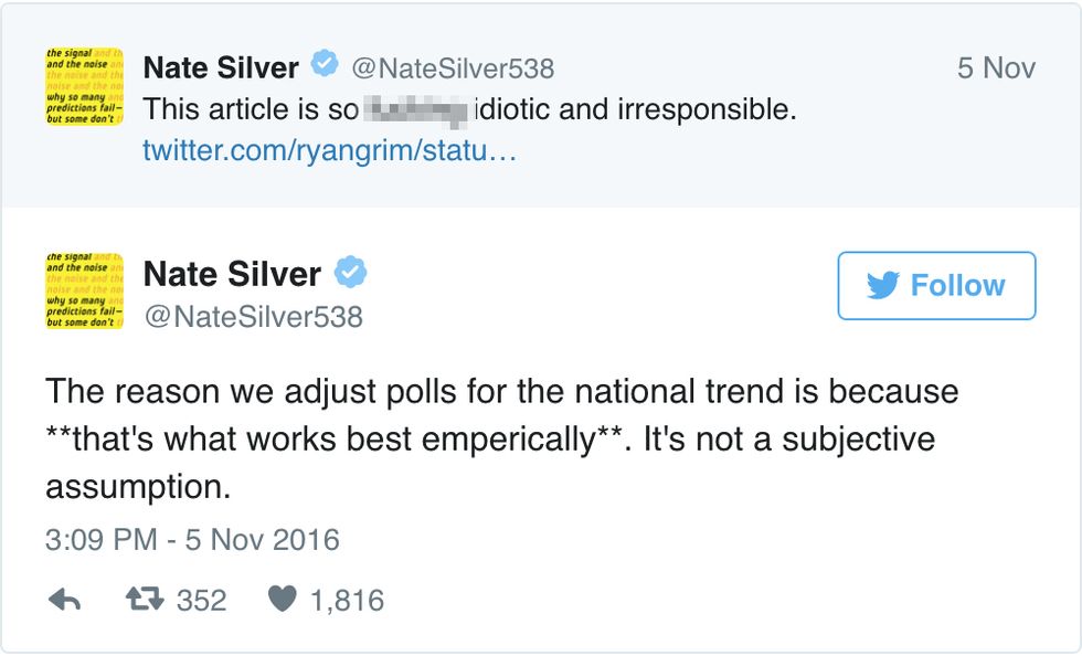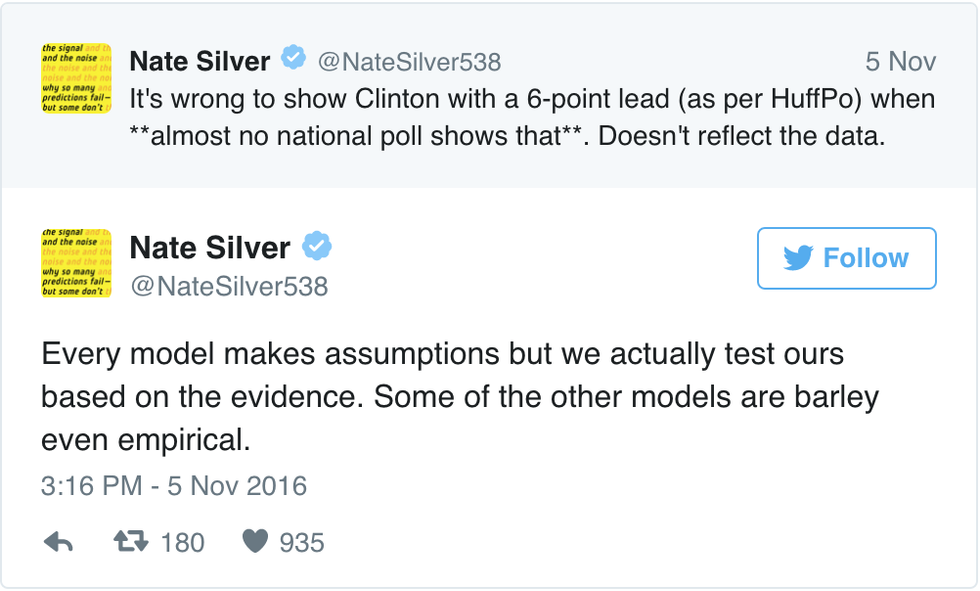 This is not an accusation that Silver took lying down. He quickly went to Twitter to go off on the HuffPost writer in a no-holds-barred rant.