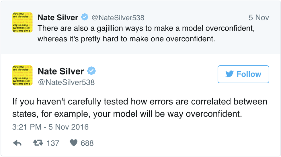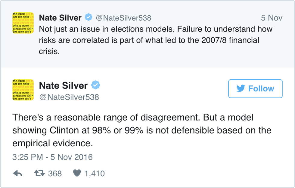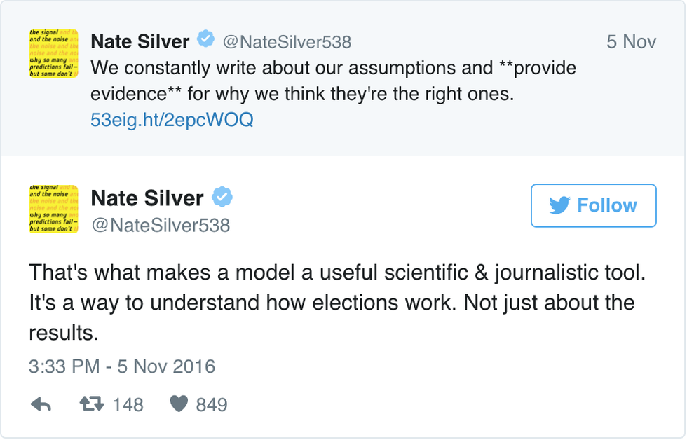 Famed statistician Nate Silver runs the popular numbers blog FiveThirtyEight.com, which is famous for it's accurate predictions. Silver is very meticulous about the information he gathers and includes in his forecasts.