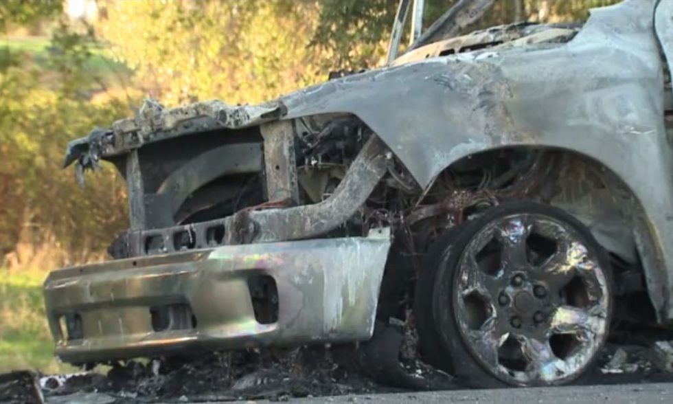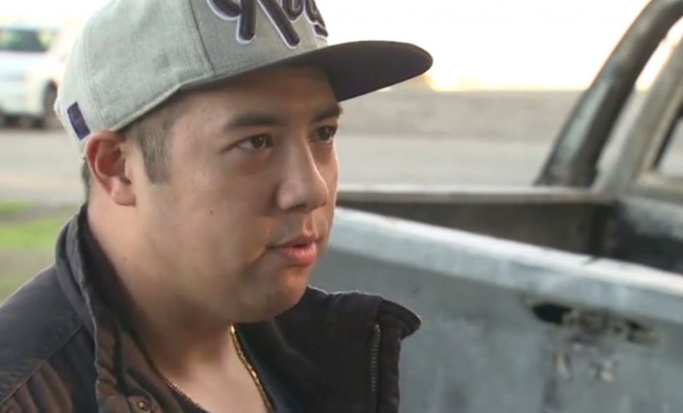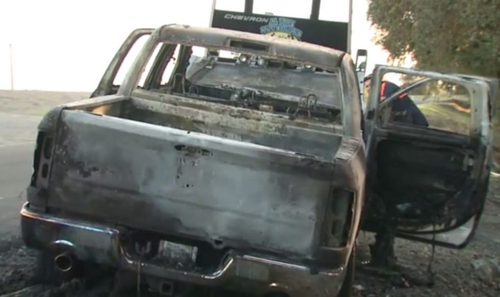 Fearing for his son's safety, Lee didn't venture toward his truck until the commotion subsided — and by then flames were shooting out of his truck's windows, KTXL reported.