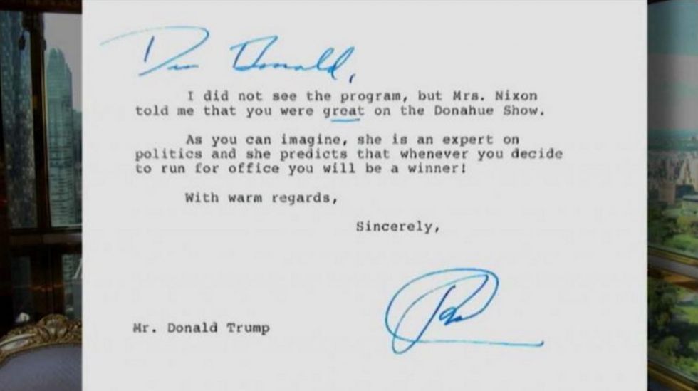 In the letter, Nixon congratulated Trump on an appearance on "The Phil Donahue Show," during which the billionaire businessman argued that the U.S. must be compensated for providing military protection to other countries.