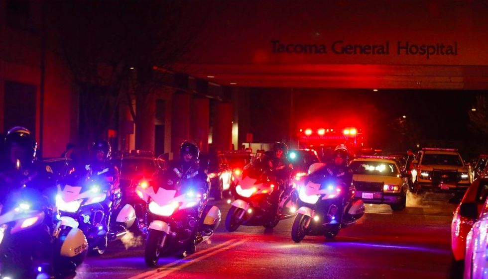 In a statement, Washington Gov. Jay Inslee said he and his wife Trudi were sending their thoughts and prayers to the family and loved ones of the officer: "All of Washington grieves with Tacoma, which tonight lost one of their finest. Our hearts are with the men and women of the Tacoma Police Department, their families, and their brothers and sisters in law enforcement across Washington."