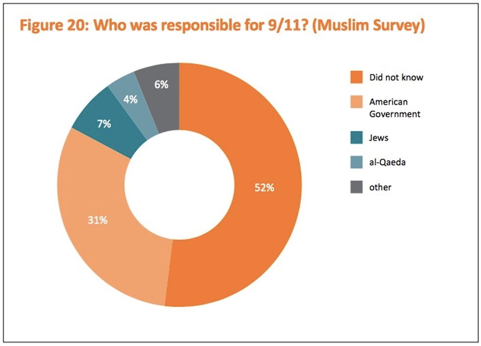 A narrow majority of British Muslims (52 percent) have no idea who was responsible for the deadly 9/11 attacks on New York City's World Trade Center complex, and — shockingly — nearly one-third (31 percent) believe the U.S. government was responsible, according to a new study.