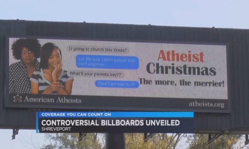 Some apparently didn't find humor in the atheists' message and refused to talk on camera to KSLA about the billboards. But one woman noted that respecting others' right to not believe the religious aspect of Christmas is an important principle to live by — not that it will deter her from exercising her faith.