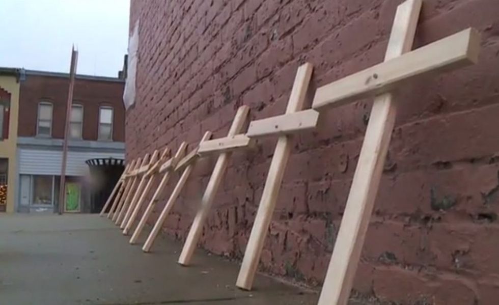 It was Hutson's idea to make over 200 wooden crosses and give them out for free, the station said — and by the time a vigil supporting the Christmas tree cross commenced Sunday night, almost all of them were snapped up.