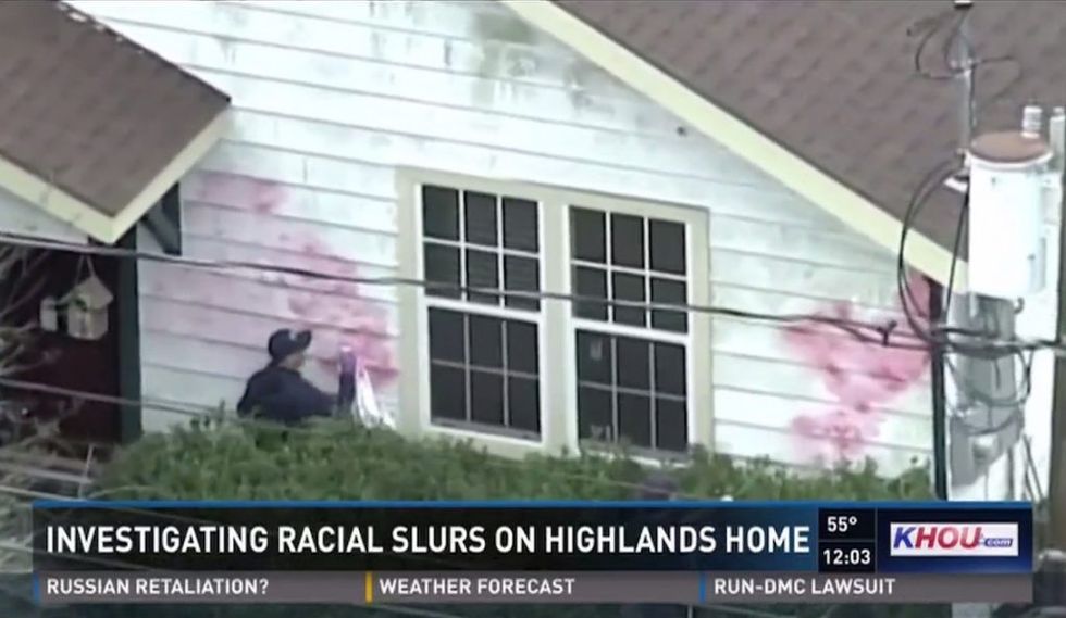 The homeowner then went outside and saw that his vehicle as well as the outside of his home were spray-painted with the N-word, KPRC-TV reported.