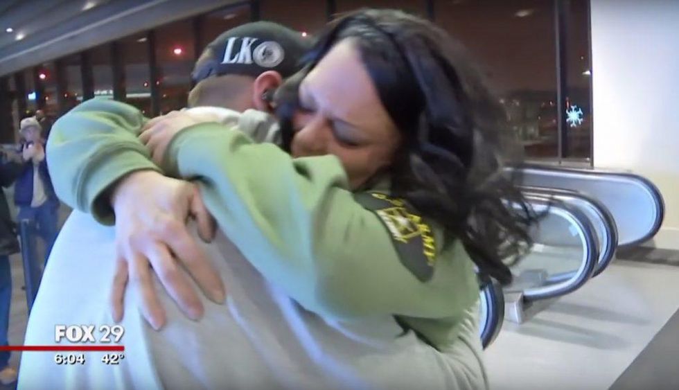 Her 19-year-old son Austin, a soldier in the U.S. Army, made a surprise trip home for the holidays from Fort Benning, Georgia — all arranged by a stranger after Freni struggled to pull together money for her son's airfare, WXTF-TV reported.