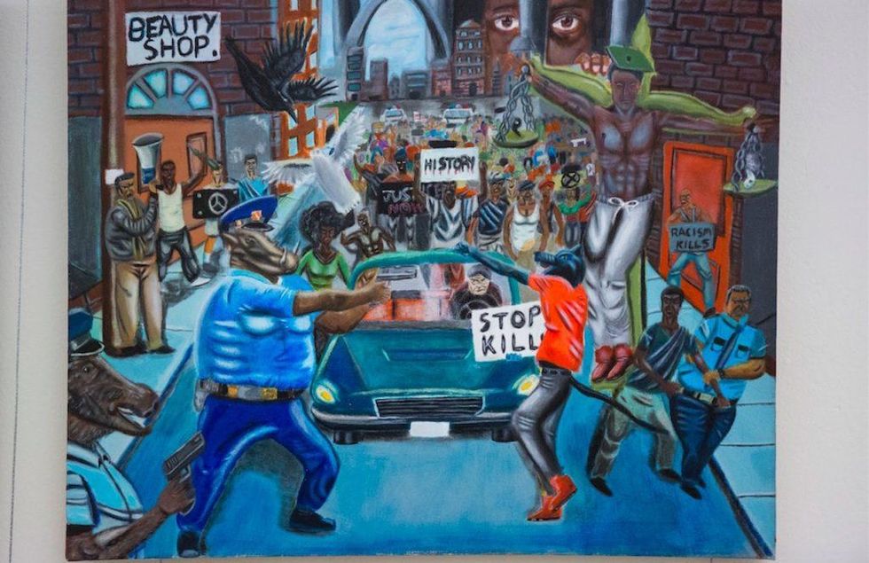 The painting — by a recent high school graduate who won a congressional art competition sponsored by Rep. Lacy Clay. D-Mo. — was taken down by Republican lawmakers at least three times since last Friday. And Clay kept putting it back up, saying that it's a defense of the First Amendment and freedom of expression.
