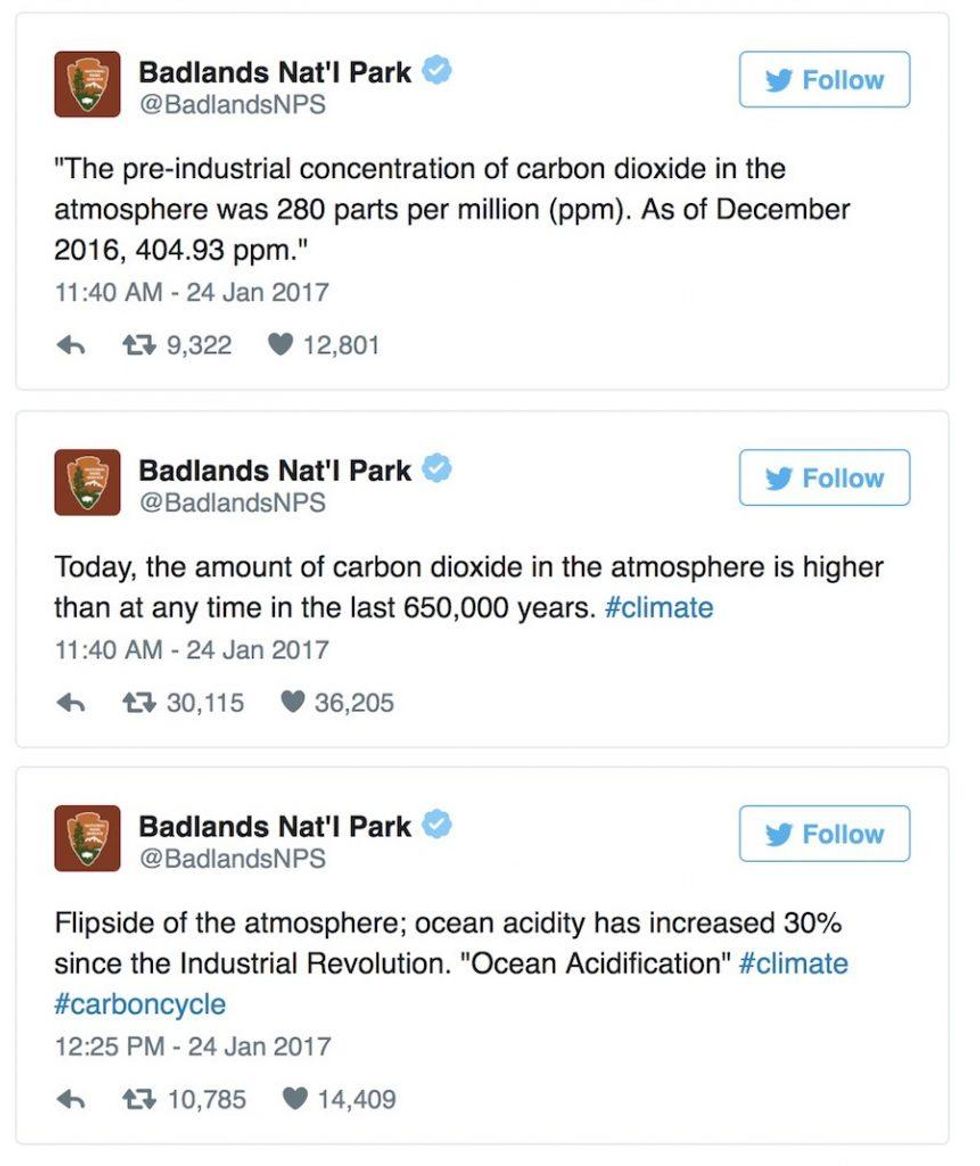 While the Trump administration is trying to tamp down the politicization of social media from official government accounts, a National Park account defied the order with three tweets seemingly in support of the climate warming cause: