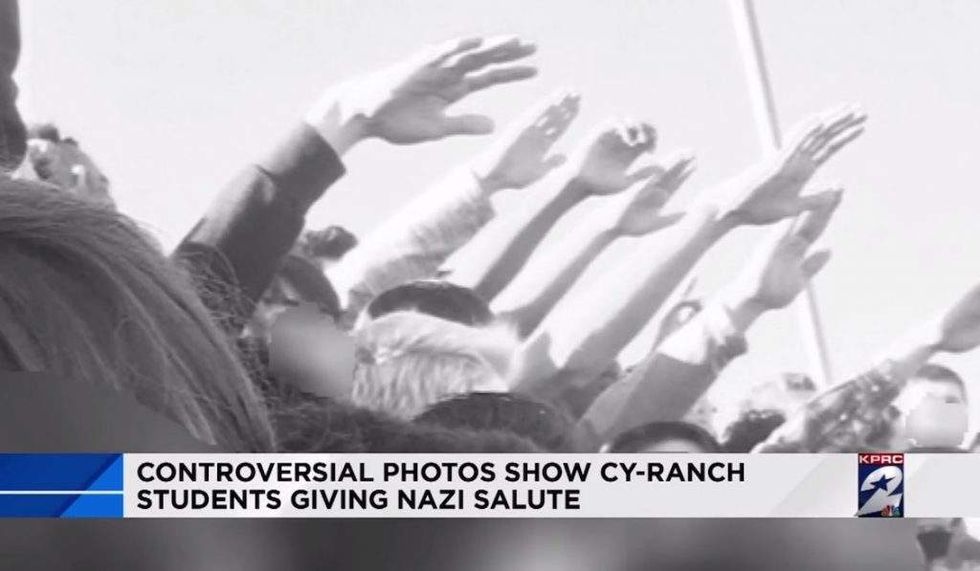 Seniors at a Texas high school are seen allegedly giving the Nazi salute in photos circulating online, KPRC-TV reported — and someone who claimed to be a fellow student told the station numerous students also were shouting "Heil Hitler" and "Heil Trump" at the time.