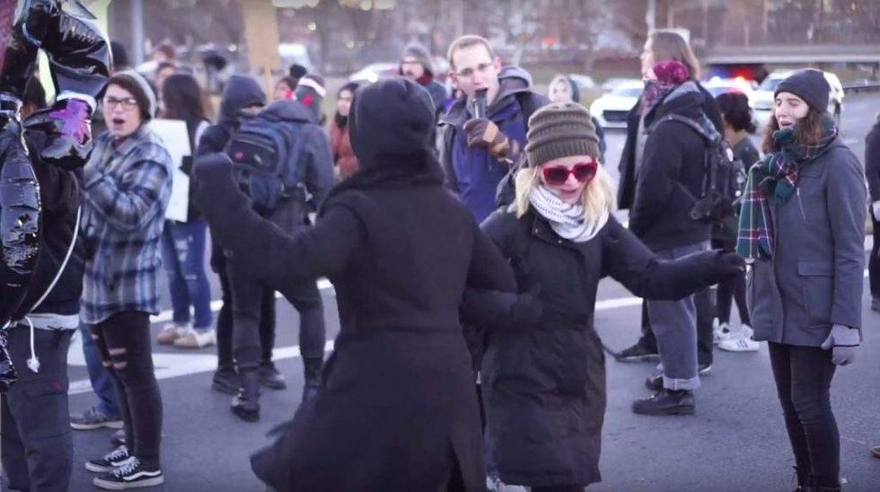 Here's a compilation video of the New Haven protests. (Content warning: Some rough language):