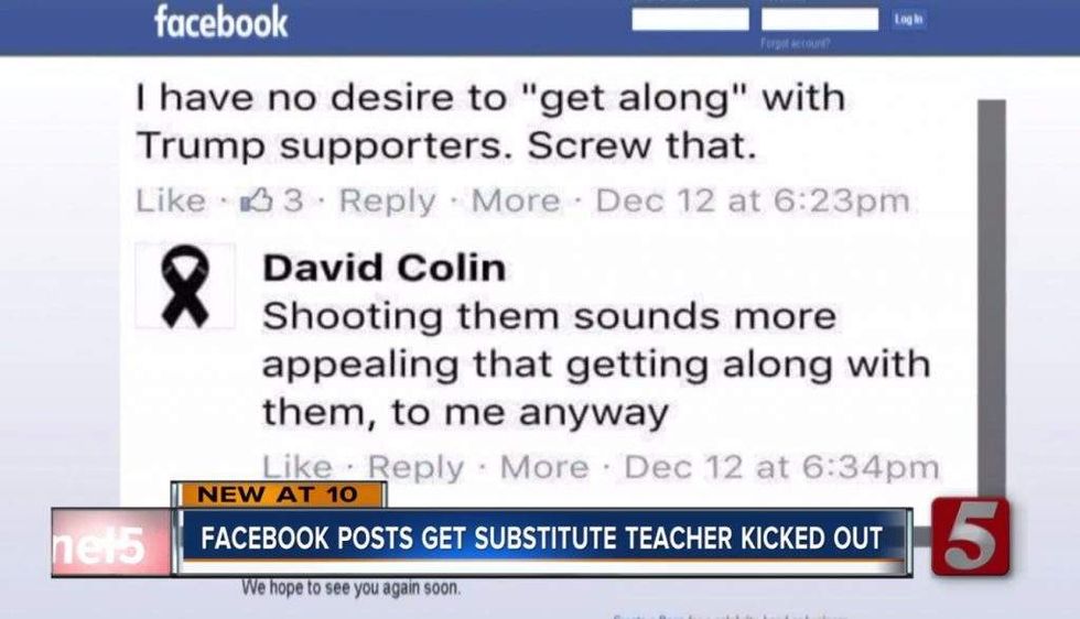 A Tennessee substitute teacher won't be back in the classroom after his Nov. 9 Facebook post — “the only good Trump supporter is a dead Trump supporter" — was brought to light.