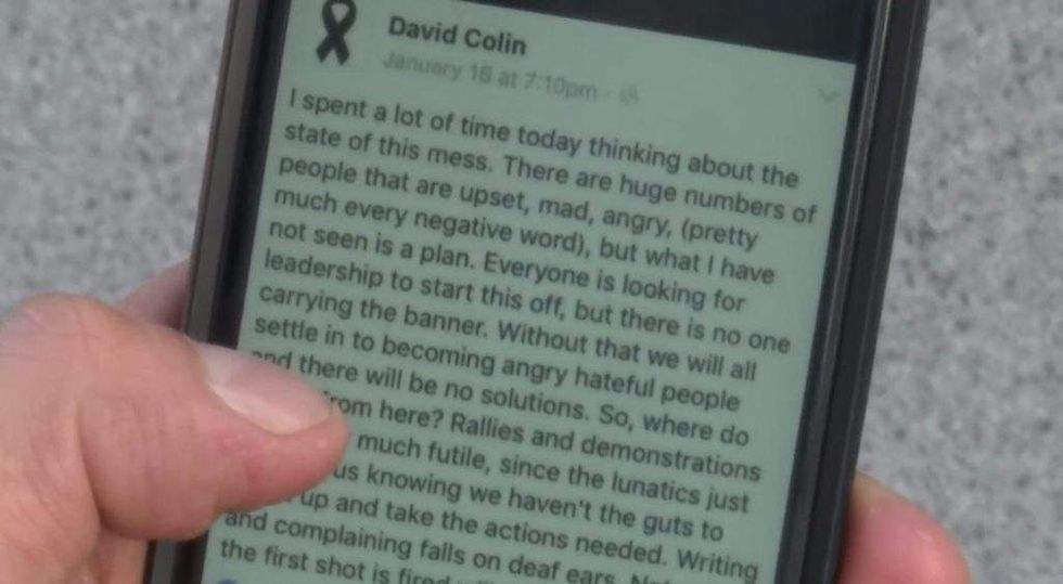 WTVF-TV said David Colin admitted he posted that comment — as well as one a month later also referring to Donald Trump supporters: "Shooting them sounds more appealing than getting along with them ..." — amid a divisive post-election America.