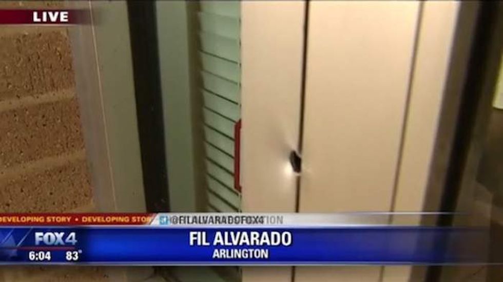 One of the bullets hit a suspect in the groin area, KTVT said, prompting him to run back to the truck, which quickly left the scene. KDFW reported that two shots hit a nearby business — but no one was at work yet — while four to five shots hit the pickup.