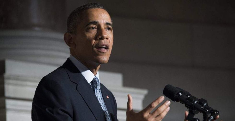 "Unless you are one of the first Americans, a Native American, we are all descended from folks who came from someplace else — whether they arrived on the Mayflower or on a slave ship, whether they came through Ellis Island or crossed the Rio Grande," Obama said.