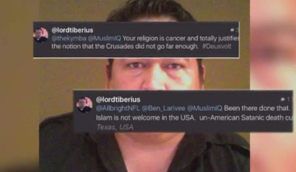 Newsfix noted two of his tweets read, "Islam is not welcome in the USA" and "Your religion is cancer and totally justifies the notion that the Crusades did not go far enough."