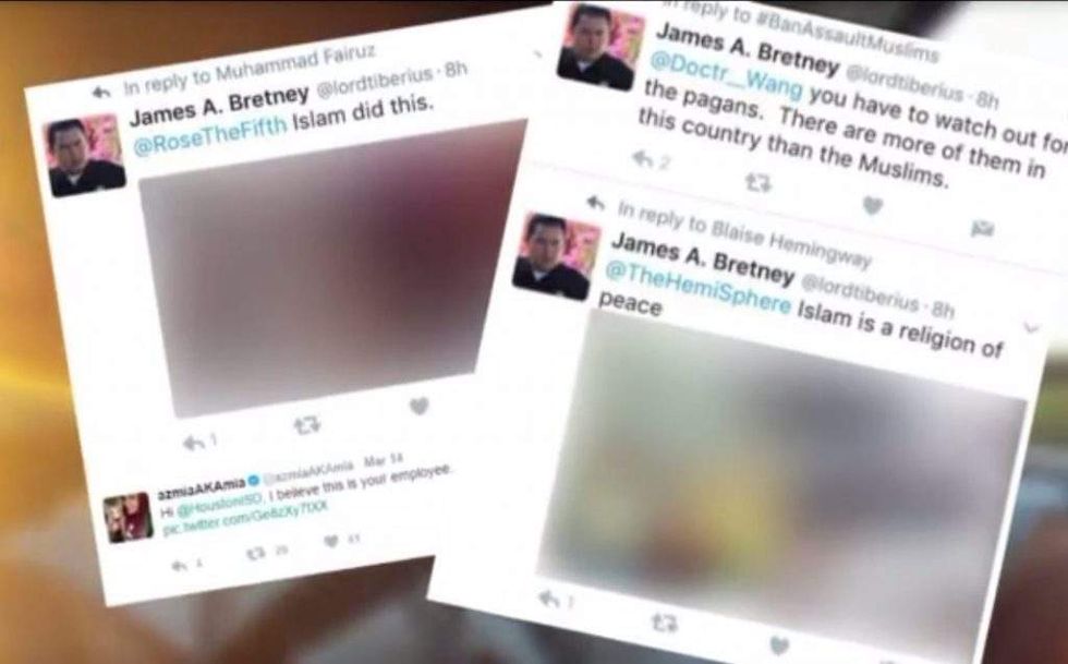 But Mustafaa Carroll, executive director of the Texas chapter of the Council of American Islamic Relations, told KTRK he remains disturbed by the tweets because the sender — he didn't use Bretney's name — is a teacher.