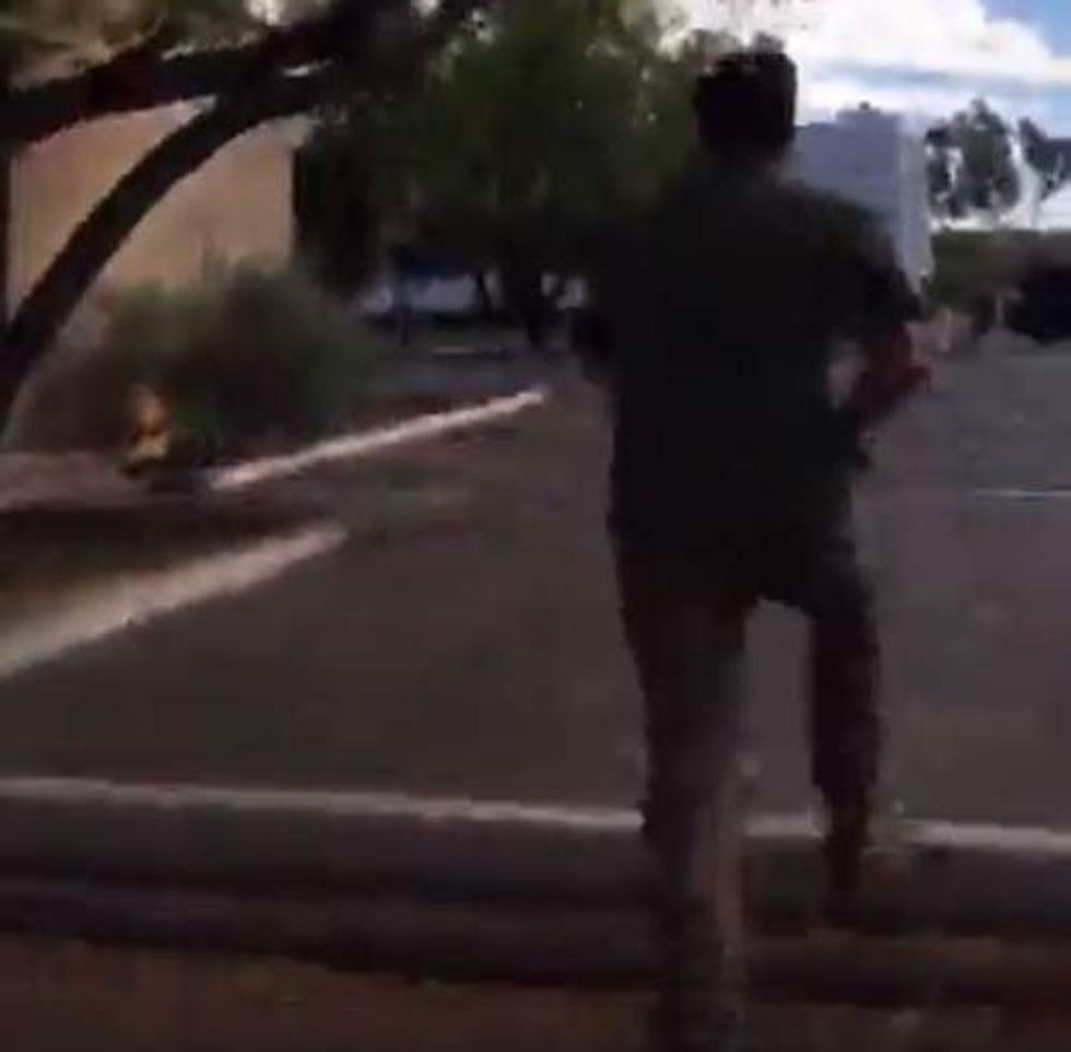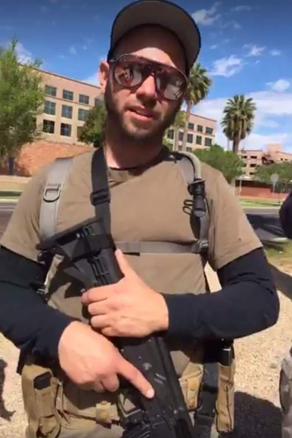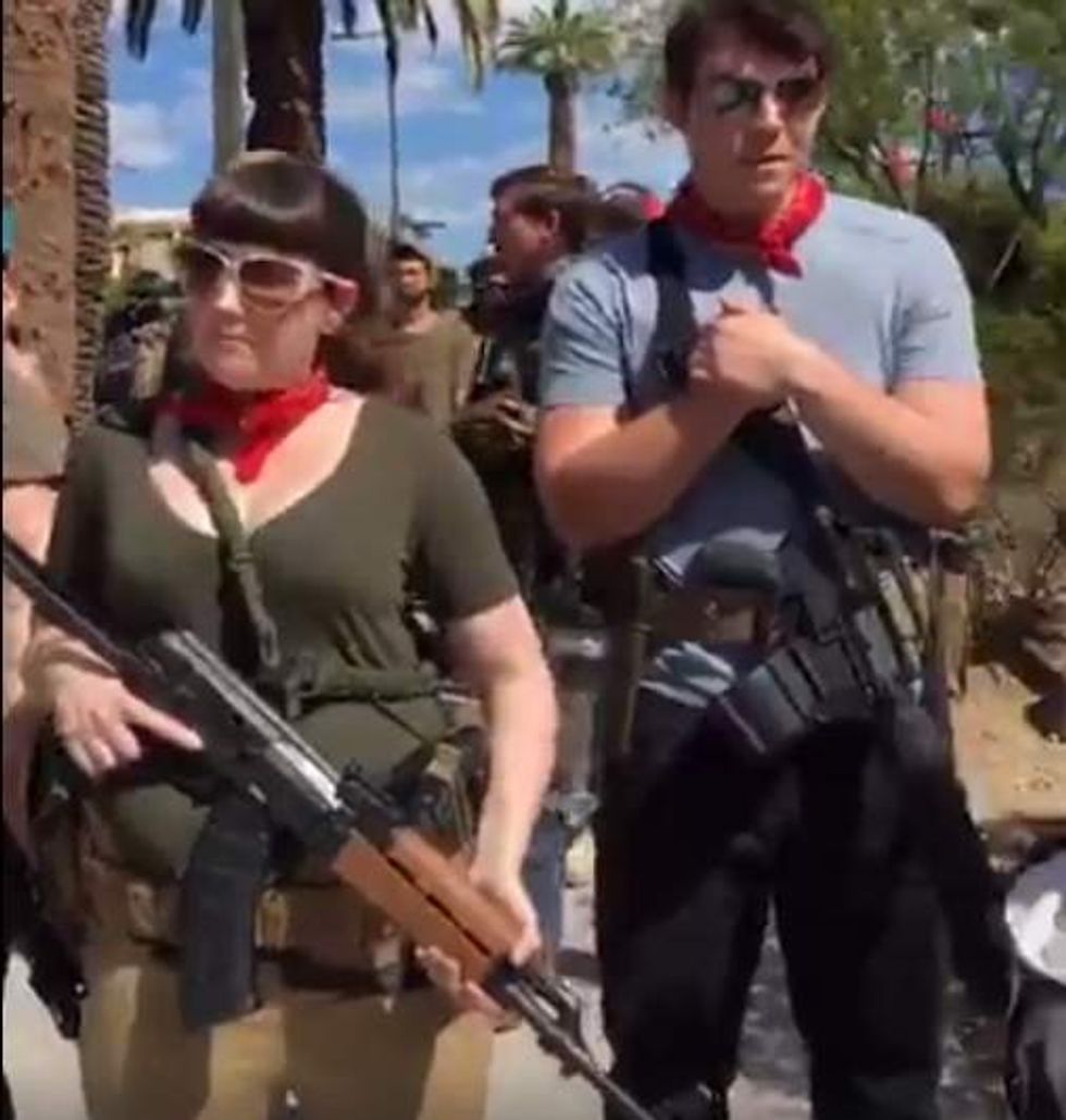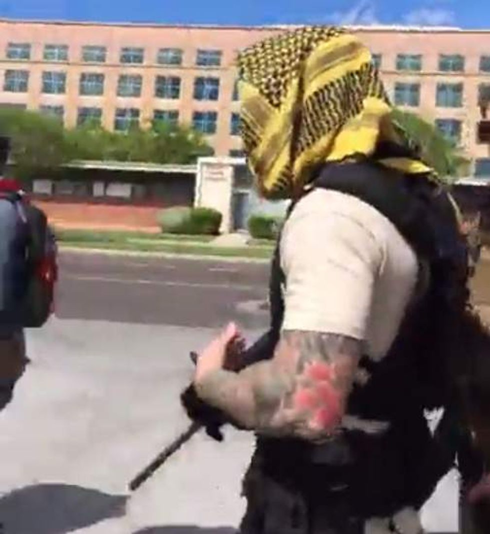 A heavily armed left-wing group tried to intimidate a liberal reporter into not recording video of their actions Saturday in Phoenix. (Image source: Facebook video screen cap)