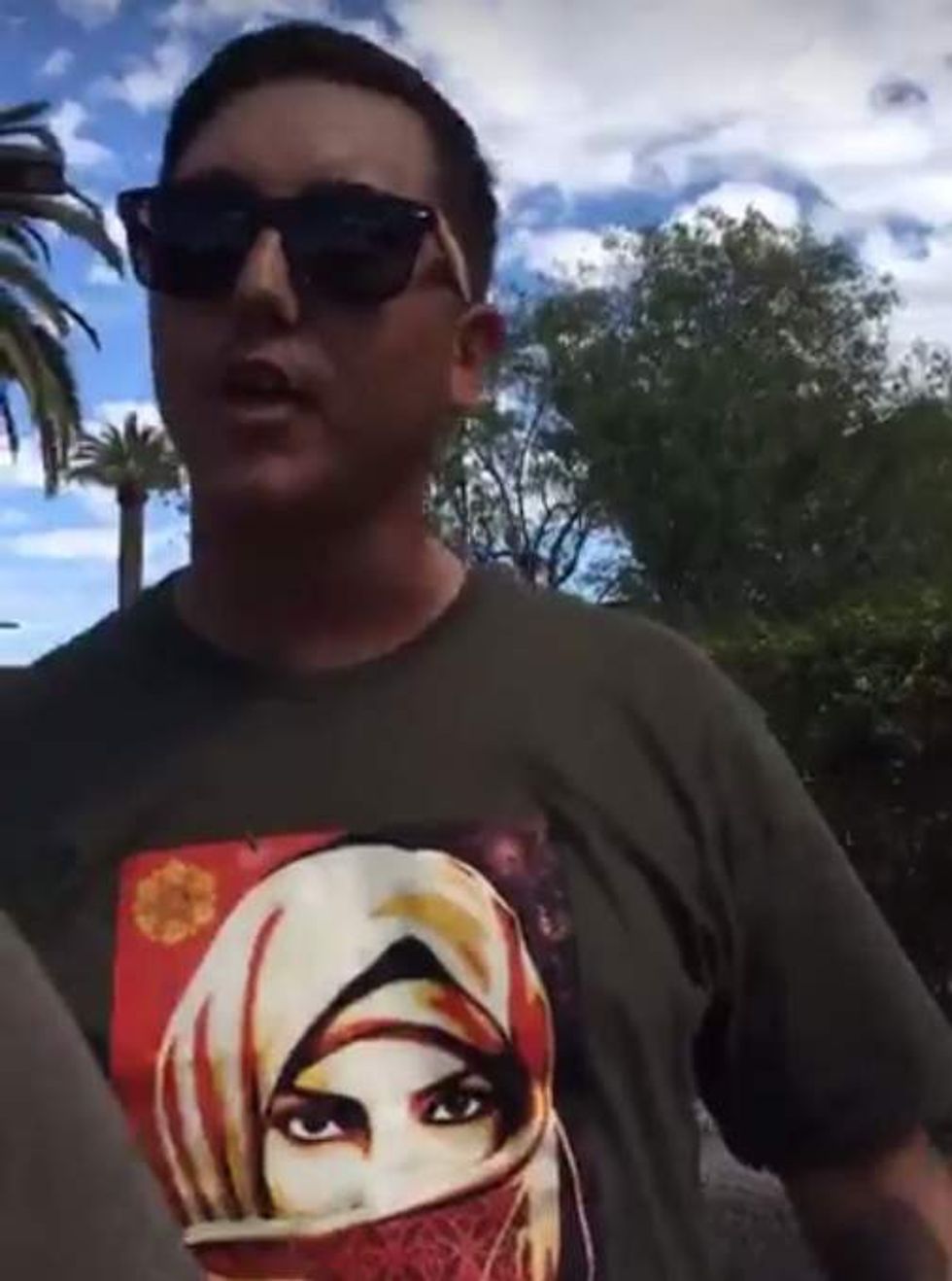 "Usually I'm documenting right-wing hate groups," Lemons told the man, "and I'd be cool with you guys being down here. But the hostility is not cool."