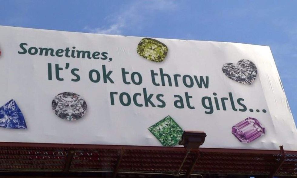 There was a bit of a stir in downtown Asheville, N.C., over the weekend — and it all stemmed from a billboard that declares, "Sometimes it's OK to throw rocks at girls."