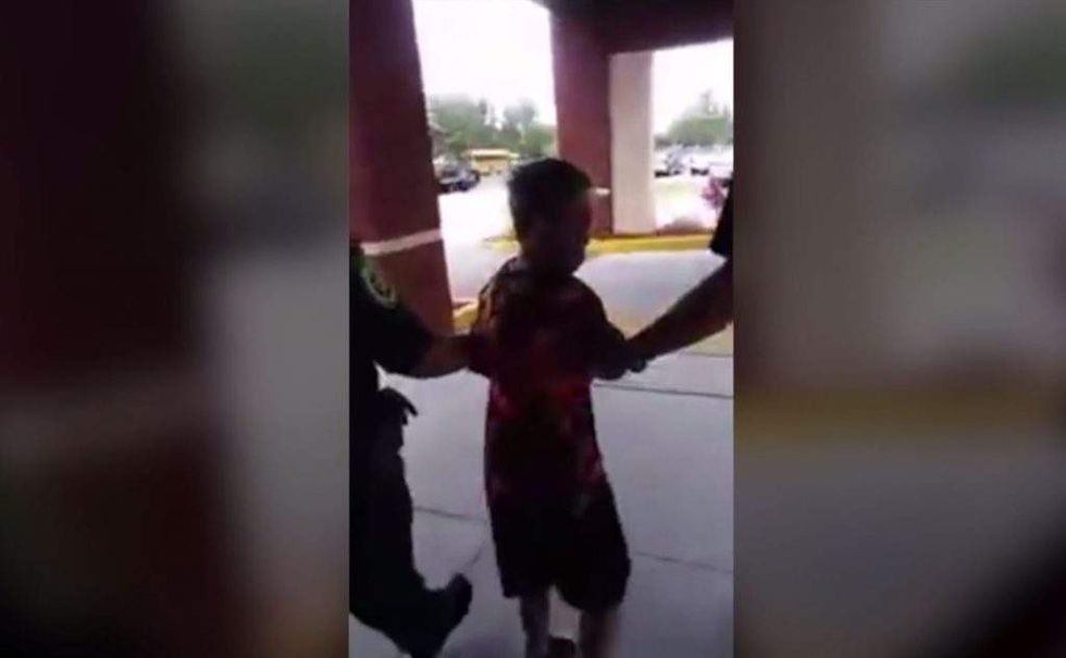 Soon the boy was crying as he was led out of Okeechobee Achievement Academy and into a patrol car.