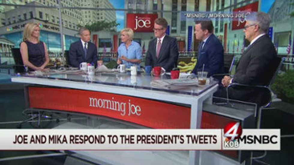 Brzezinski and Scarborough denied the account in a scathing Washington Post article where they questioned the mental fitness of the president based on his "bizarre behavior" since assuming the Oval Office.