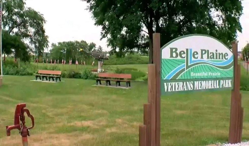 The Satanic Temple's monument — a black cube adorned with pentagrams and an upturned helmet — is slated to go up in Veterans Memorial Park in Belle Plaine, Minnesota, the station said.