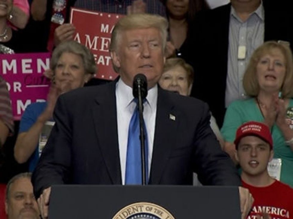 "You've heard me say it before on the campaign trail," Trump said in a recent rally, "and I'll say it again tonight. In America, we don't worship government, we worship God."