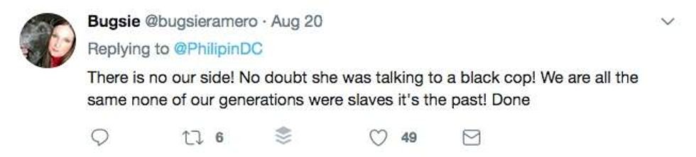 Indeed, a white female Antifa member was caught on camera assaulting a black conservative college student attending a vigil for a victim of the deadly Charlottesville demonstrations. To the left, race isn't a factor in comparison to ideology.