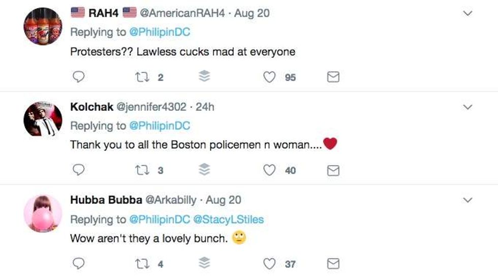 As TheBlaze previously reported, the mainstream media dutifully beat its drum about how "peaceful" the protest was against the "free speech" gathering in Boston over the weekend, but police had quite a different story to tell.