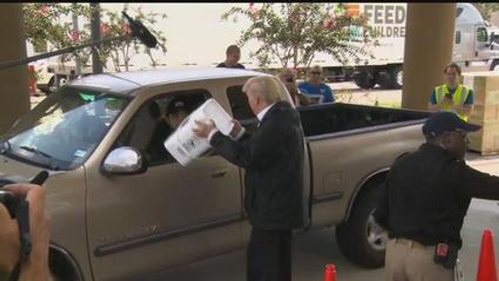 They also visited a church that had been turned into a shelter in Pearland, a suburb south of Houston where Hurricane Harvey caused some of the worst damage.