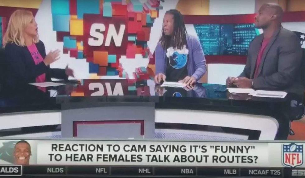 ESPN host Michelle Beadle said on air last week that "white men" need to "shut up and listen for five minutes" — and after first noting she doesn't want to "stereotype." (Image source: YouTube screenshot)