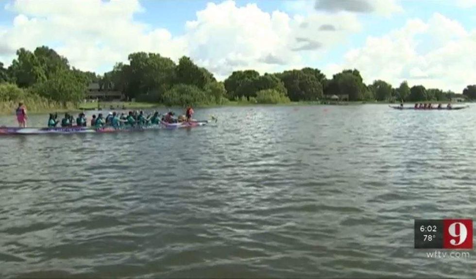 A Florida police officer is accused of not standing during the national anthem while on duty, sources said. He was asked to stand at the time, and he refused, a TV station reported. (Image source: WFTV-TV video screenshot)