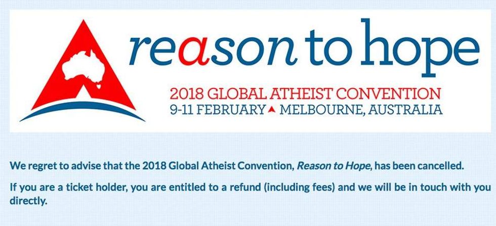The third Global Atheist Convention titled, "Reason to Hope" — scheduled for February in Melbourne, Australia — has been canceled due to "lack of interest," the Sydney Morning Herald reported.
