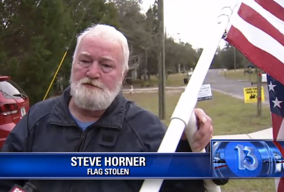 Horner told WTVT she wanted the U.S. flag taken down because her son and grandfather "both died." It isn't clear in what context her son and grandfather died, but Horner told the station he replied by saying "the flag ain't got nothing to do with it."
