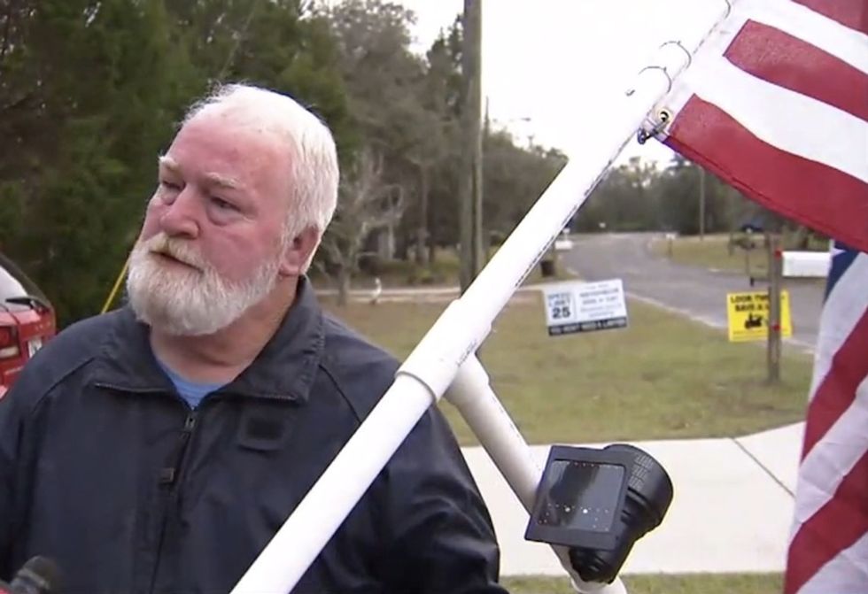 A 69-year-old Florida man said his neighbor got violent with him over an American flag flying in his front yard. (Image source: WTVT-TV video screenshot)